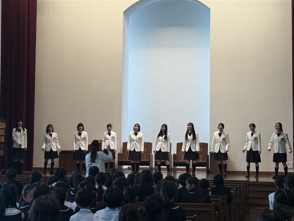 関西学院高等部グリークラブの方が昼休みに来てくださりました。馴染み深い曲をたくさん歌ってくださいました。子供たちは歌を口ずさんで楽しそうにきいていました。いつもとは違う、音楽を楽しむ有意義な休み時間を過ごしていました。